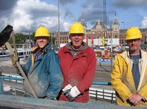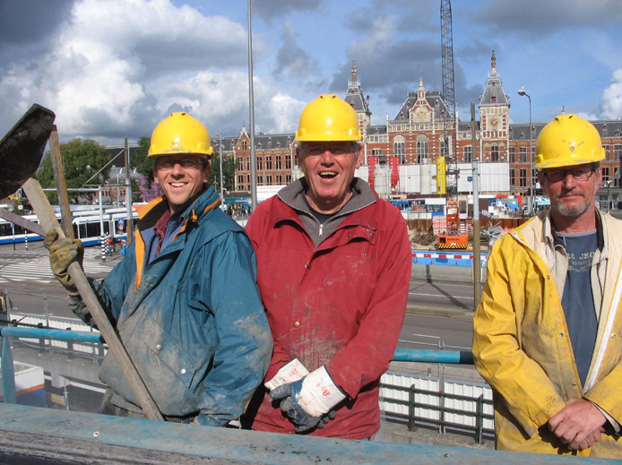 AWN-ers op de zeefinstallatie bij de aanleg van de N-Z lijn aan het Damrak te Amsterdam.
