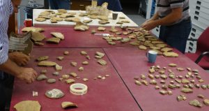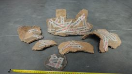 De potten waren te breekbaar om 2600 jaar ongeschonden door te komen en er werden veel scherven opgegraven. Puzzelaars van de archeologiewerkgroep zijn erin geslaagd om uit honderden stukjes weer een forse voorraadpot te reconstrueren.