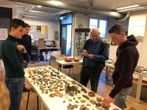 Alle gevonden materiaal ligt momenteel in de werkruimte van de AWN aan de Groenmarkt in Dordrecht. Scherven van potten, bekers en schalen, dierlijke botten van slachtvee, glaswerk, gesmede spijkers en fragmenten van een maalsteen. De scherven zijn inmiddels gewassen en gesorteerd en de jongens zijn bezig met het beschrijven van alle vondsten. Elk voorwerp krijgt een uniek nummer, een datering en een beschrijving van de herkomst en het gebruik.