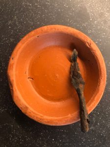 Daarop besloten we de tactiek te veranderen en de berg visueel af te zoeken naar grotere fragmenten aardewerk e.d. Dat had meer succes, want de berg zand lag bezaaid met scherven geglazuurd aardewerk van na 1500, maar ook steengoed uit de 15e eeuw, uit de tijd van het klooster dus. En ook veel dierlijk botmateriaal met hak- en snijsporen. (slachtafval van het klooster?)