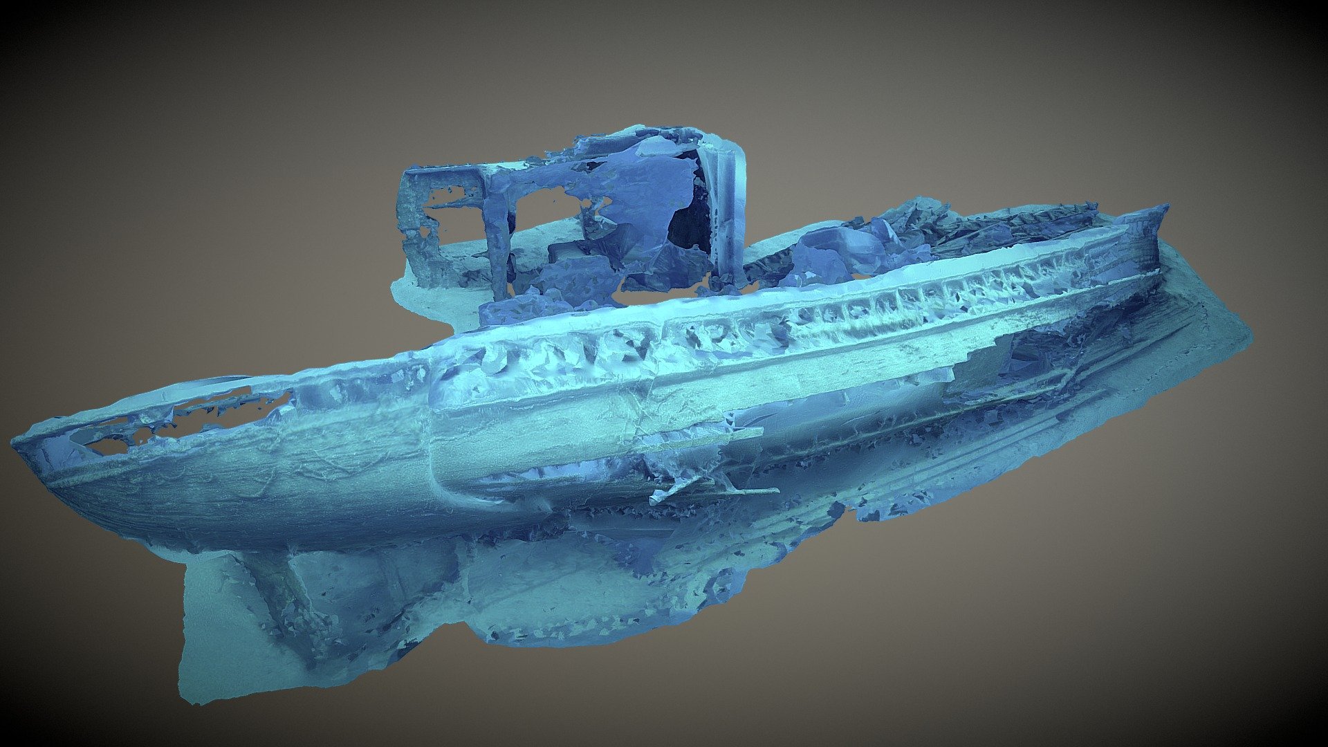 Twee 3D-opname gemaakt met fotogrammetrie. Links een opname boven water, rechts onder water.(foto’s van Ernie de Jonge).