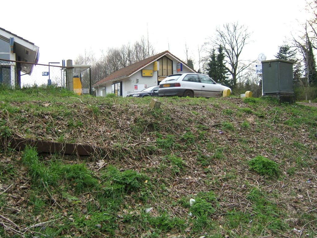 Even vóór de spoorweg, in 1814 geopend, zagen we nog een afgezand terrein aan de voet van de Zwaluwenberg , afgegraven voor ophoging van de spoorbanen. (1814 doorgestreept, annotatie 1874)