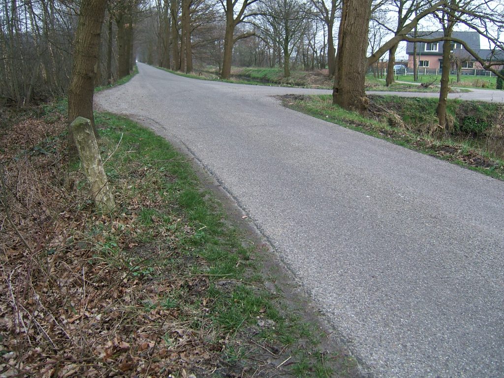 Bij Westbroek en Achttienhoven, aan onze rechterhand, denken we even aan de concurrerende Utrechtse Kerkkapittels en aan onze linker zien we misschien als we heel goed kijken, 2 korte stenen palen tussen de lange, aan weerszijden van No. 20.