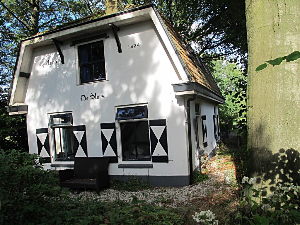 Even voorbij Vrede ’t Best bewonderen wij ’t schilderachtig vervallen, sterk begroeide sluisje bij het Roopannenhuis, dat al lang geen dienst meer doet.