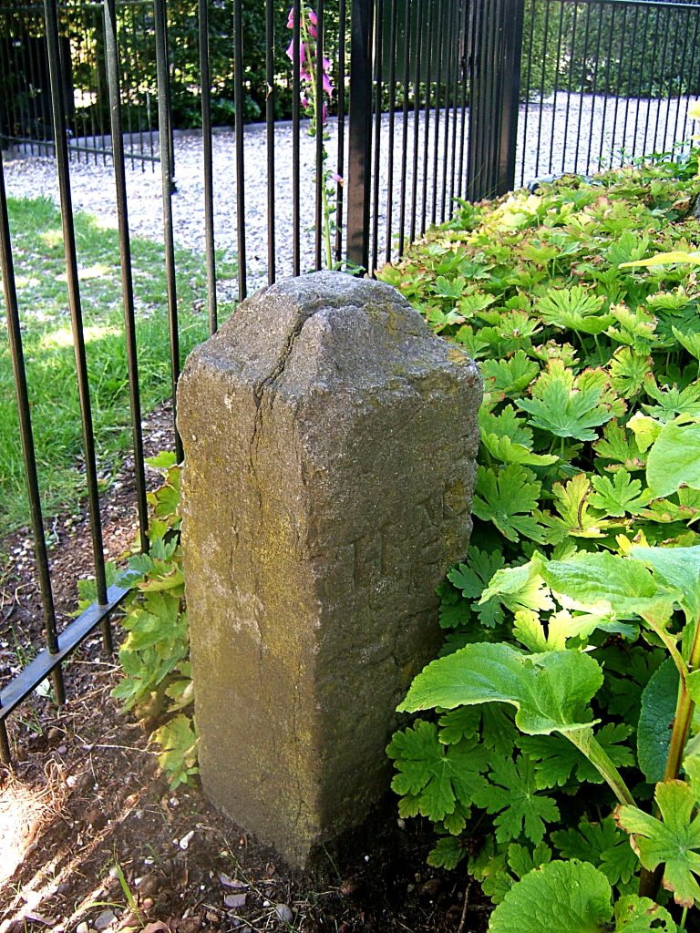 Op ons beginpunt behoorde een korte stenen paal met No. 54 te staan; bij No. 22 beginnen de mooie lange stenen palen met de provinciewapens, geplaatst kort na 1771, af gewisseld door de moderne van grover model van 1925.