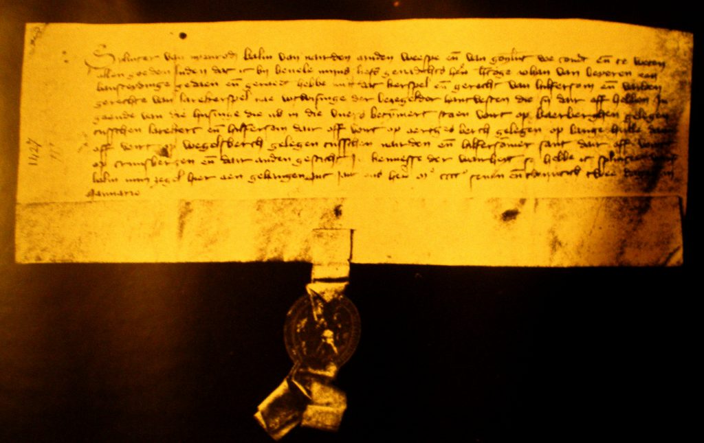Dat was natuurlijk groothartig van de ruwaard. Het zal ook gepast hebben in zijn politieke afwegingen toentertijd. Maar deze emancipatie van het dorp Hilversum moet niet los gezien worden van de algemene economische ontwikkeling van het Gooiland. Het ontbreekt ons helaas aan administratieve bescheiden van het dorp in die tijd. Wat er geweest is, is waarschijnlijk bij één van de twee grote branden van Hilversum in de 18de eeuw verloren gegaan. Vooral in 1766 wordt heel veel verondersteld verloren te zijn gegaan. Waarschijnlijk omdat enige stukken toevallig bij de buurmeester de Blinde thuis lagen, hebben wij het geluk dat onze perkament tot ons is gekomen.