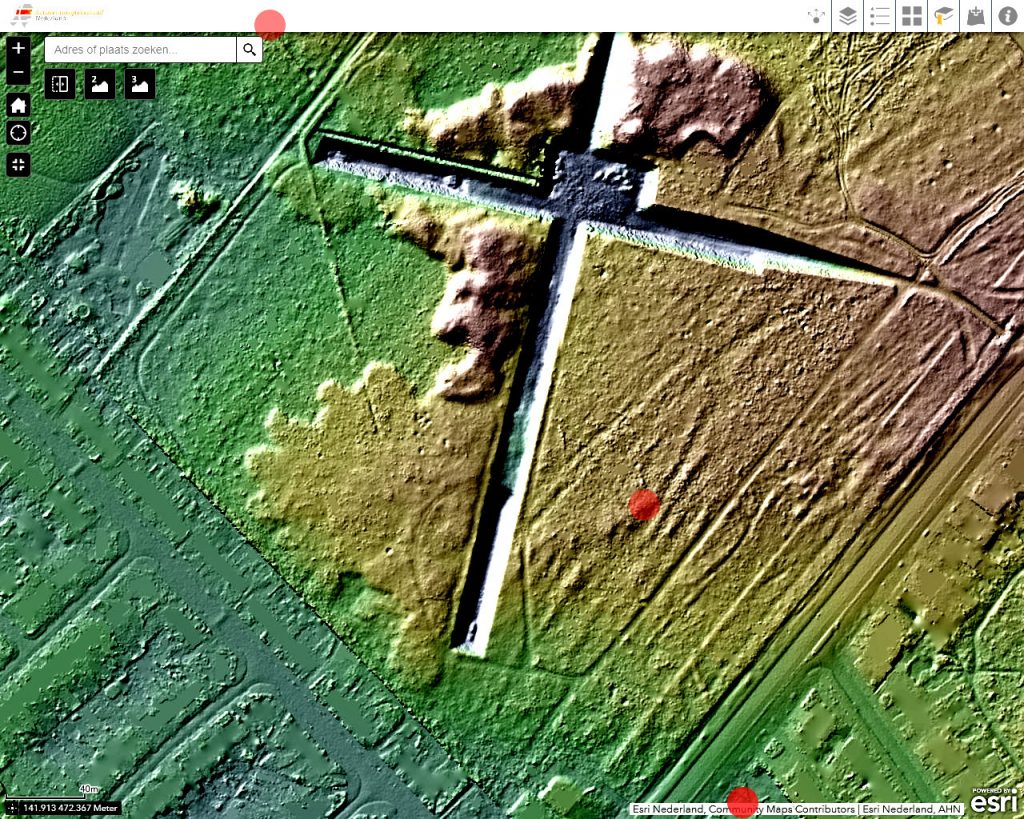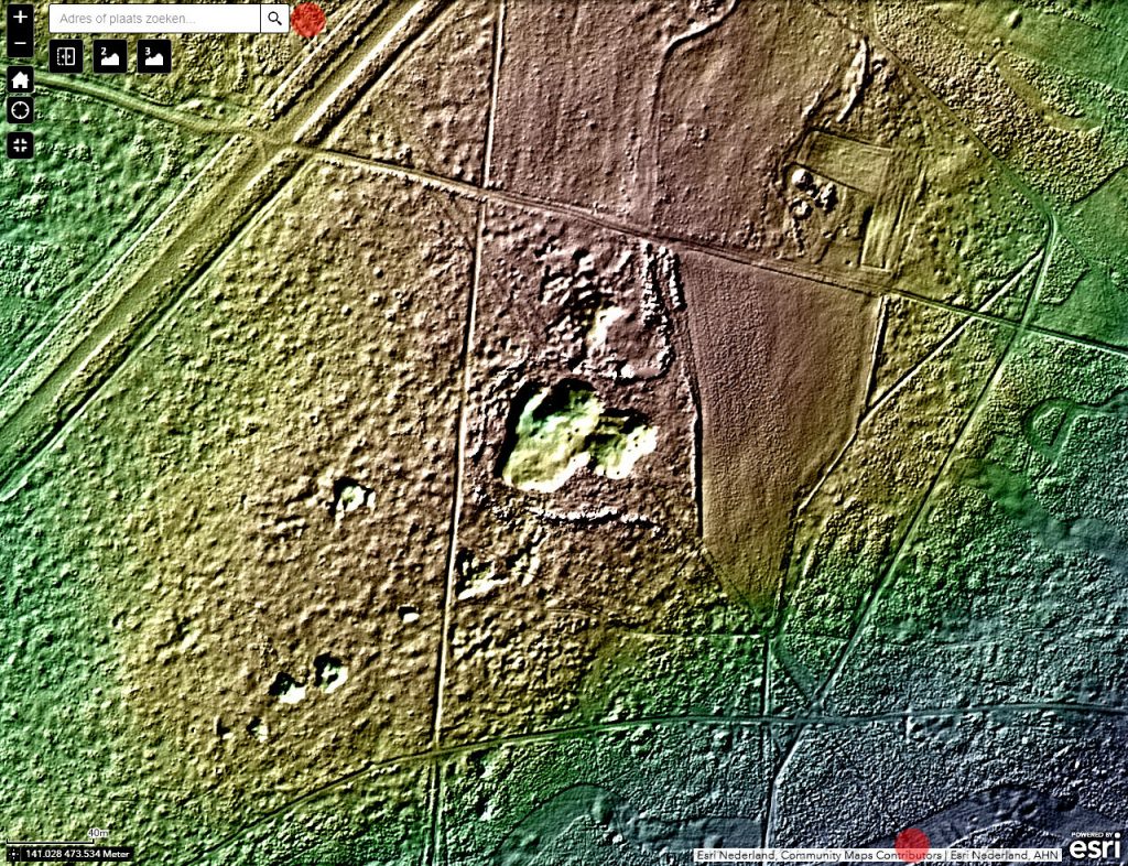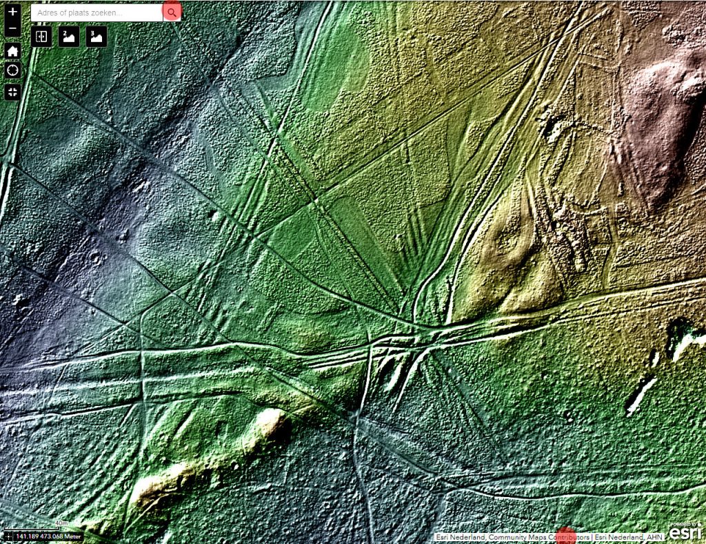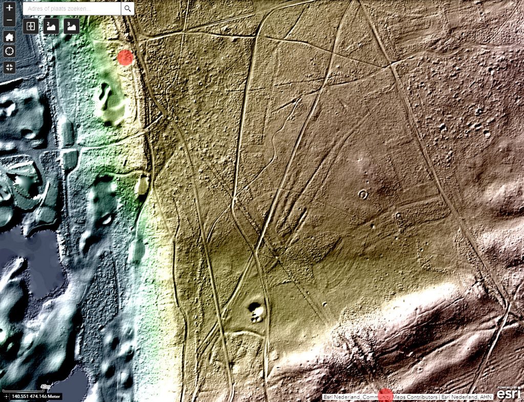 De latere grensomschrijvingen houden lijnen aan tussen bepaalde stenen of zijn daar tenminste naar op zoek. Van wallen is er echter in het grensverloop geen sprake meer. Voor of wellicht in 1732 moet de ban verlegd zijn. Maar meer dan een grenspad (óók erfgoed) zal de nieuwe scheiding niet behelsd hebben, met hier en daar een steen en enkele bomen op een vrijwel kale heide. Voor zover dit pad nog wel te traceren is in het veld, grotendeels is het relict inmiddels te gering om het op een standaard AHN hoogtekaart eruit te focussen. Probeer deze ook maar eens af te lopen. Vanaf de heide achter de Hilversumse straat Aardjesberg tot net over de wal van het voormalige militaire oefenterrein Crailo, zou u kunnen proberen. U kunt gewoon de grens volgen.