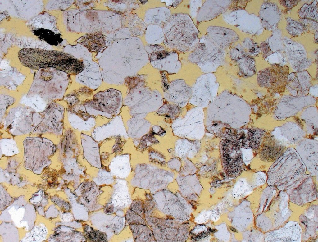 - “Door dr. T. G. Nijland (TNO) is er een slijpplaatje gemaakt van enige chips van de achterkant van fragment B. … In zijn rapport stelt hij dat een zandsteen betreft die in Nederland niet gangbaar is (het is geen Bentheimer, Oberkirchner, Nivelsteiner, Kolenzandsteen etc). Mogelijk moet de herkomst in de Palts of het Rijnland gezocht worden.”