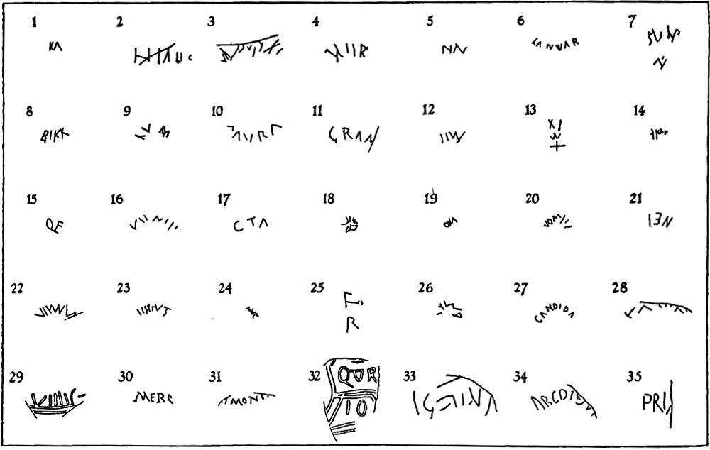 Van de steen bestond toen en nog vandaag geen vergelijkbare. Het is uniek in de wereld. Nergens is zulk een steen gevonden. Het vormt zijn eigen categorie. Vollgraff kon dus niet terugvallen op bestaande literatuur. Weliswaar kennen we voor de gehele Romeinse tijd voorbeelden van met krassen aangebrachte tekstjes, zoals enkele maanden geleden aangeroerd bij het oudste tekstje van ’t Gooi.