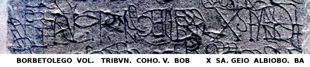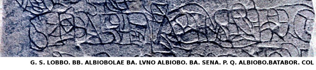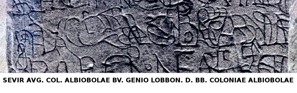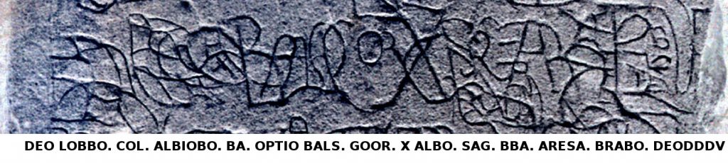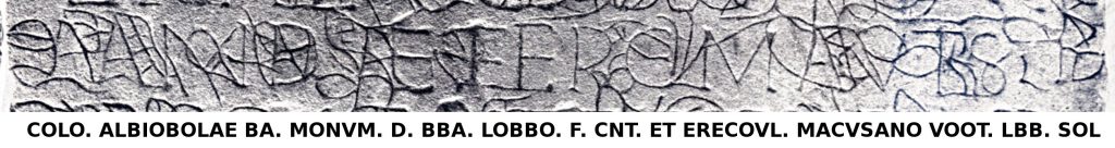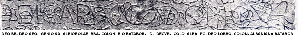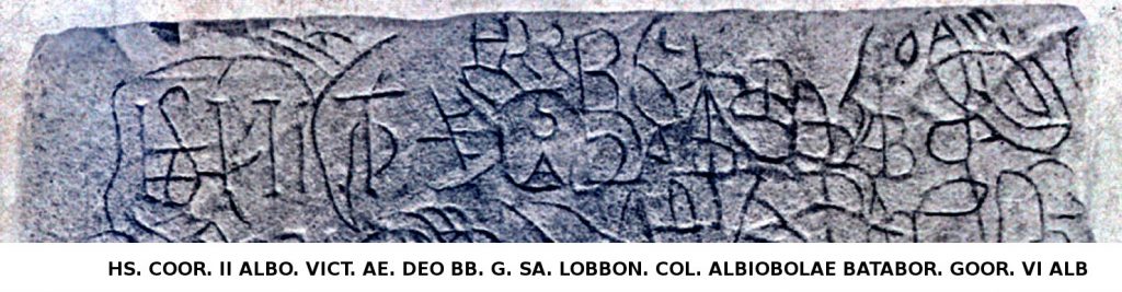 1. Hispanorum cohors II Albiobolana victrix aeterna deo Bataborum, genio sancto Lobbonno coloniae Albiobolae. Bataborum cohors VI Albiobolana
