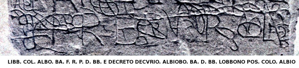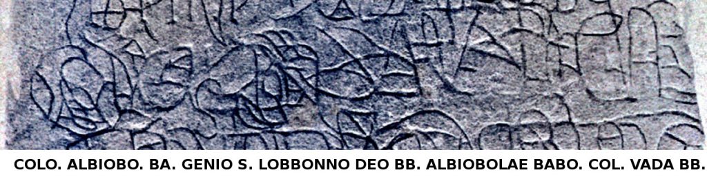 8. liberti coloniae Albiobolae Bataborum fecerunt rei publicae deo Bataborum. E decreto decurionum Albiobolae Bataborum deo Bataborum Lobbono posuit colonia Albio