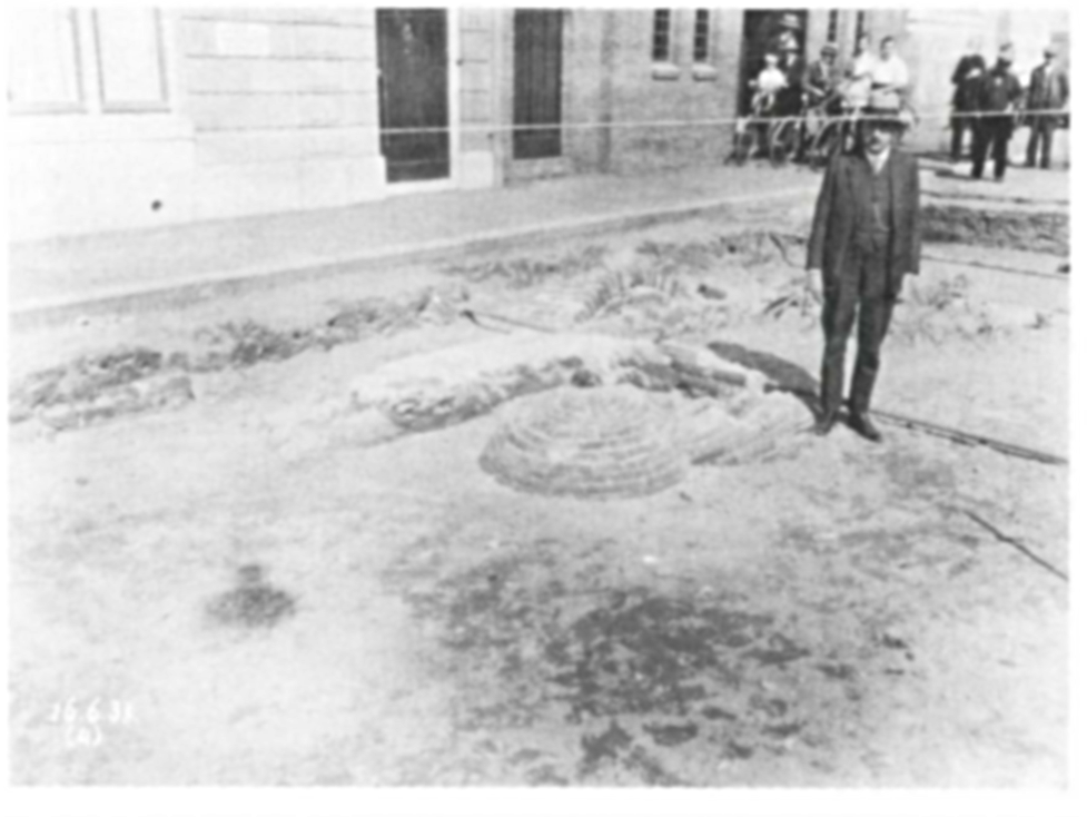 In 1938 herinnerde dr. W.C. Schuylenburg, de gemeentelijke archivaris en de derde spook van links, zich het bezoek van Holwerda als volgt: “Men meende dat Dr. J.H. Holwerda uit Leiden de meest deskundige op dit gebied was. Deze werd dan ook uitgenodigd om te komen, daalde in de put af, maar “zag niet veel” in het gevondene, hij gaf er een paar trappen tegen en ontried verder te graven, omdat dit kostbaar was en er tien tegen een toch niets bijzonders zou worden gevonden.”