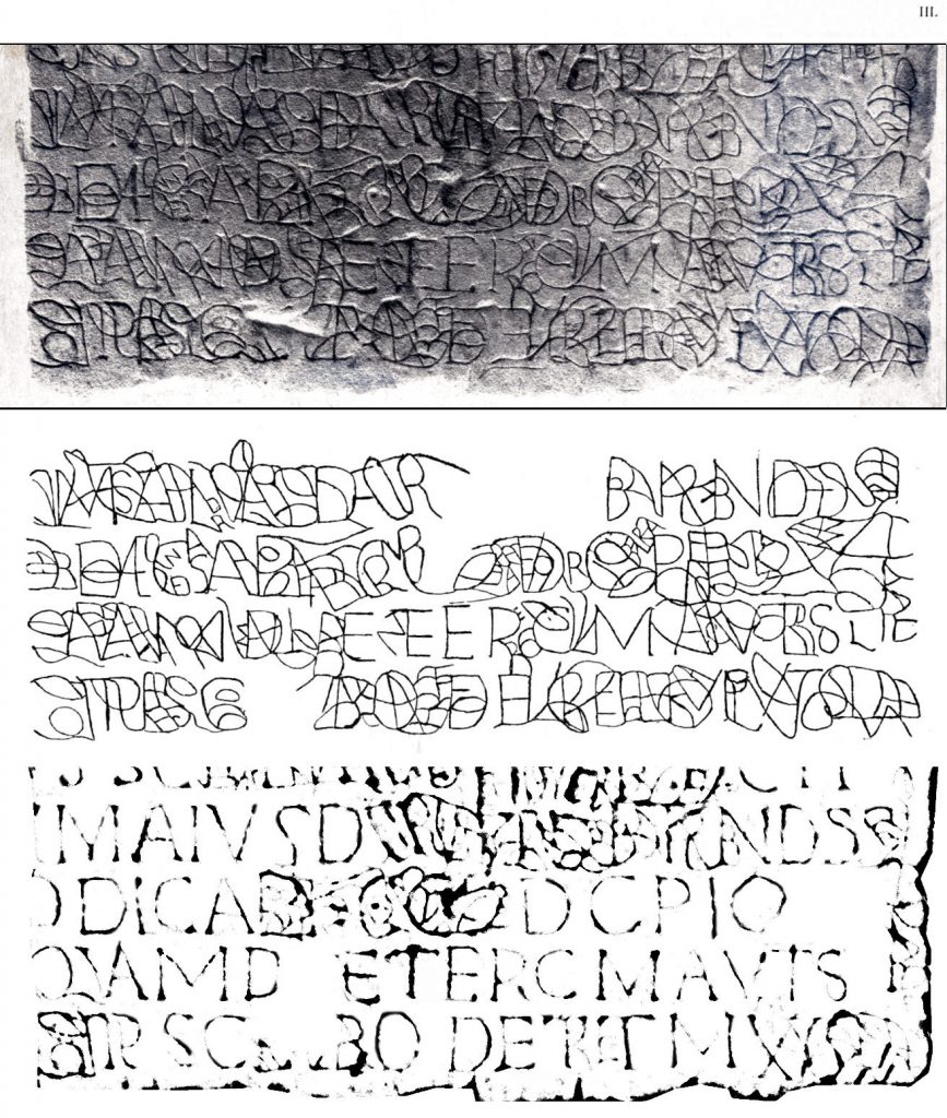 Zelfs al hebben wij ongelijk en zou die ‘geknepen ogen hypothese’ toch waar zijn, dan hebben we nog te maken met een unieke steen. Of de steen is een unieke uiting van een middeleeuwer om een normale inscriptie ontraceerbaar te maken op een manier die zijn weerga niet kent. Of de steen is een derde eeuws product van een unieke poging met een nieuw schrift een monumentale inscriptie te vormen.