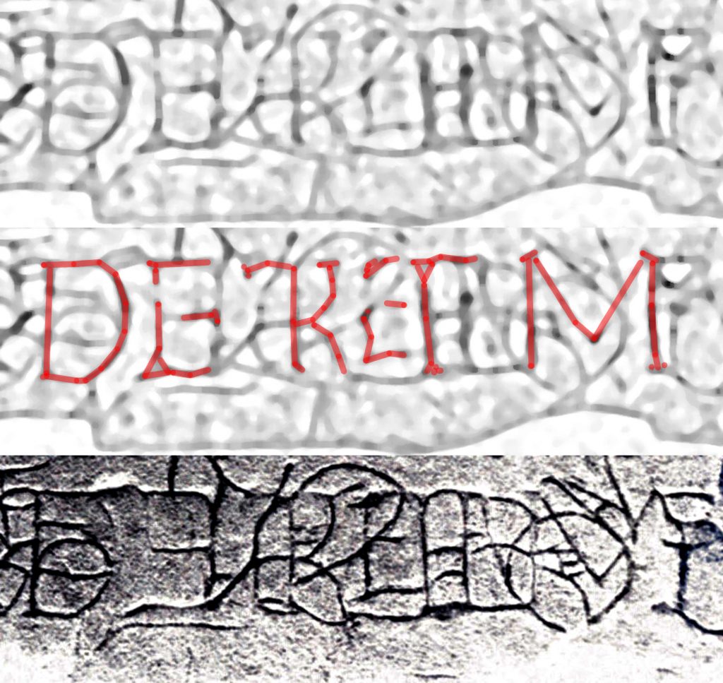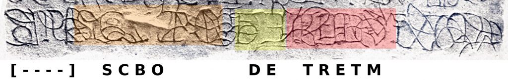 Stel dat de steen toch ouder is dan de tiende of negende eeuw. “DE TRETM” is dan toch het bewijs, al ware de steen Romeins, dat Vollgraff toch ongelijk had. Want als de steen uit de christelijke tijd is, is de vermelding ‘TRAJECTUM‘ triviaal en dus niet zo interessant. Wij weten hoe bisschoppen hun stad noemden. TRETM is pas significant als het een Romeinse inscriptie betreft. Want als het hier Trajectum heette, heette het geen Abiobola (gaat de gedachtegang) en moet Vollgraff ongelijk hebben. Nu is de TR ligatuur eigenlijk niet onmogelijk. Goed gevonden, een tijd welbesteed..