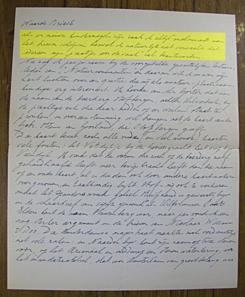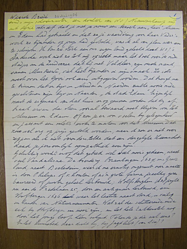In najaar ’31 correspondeert Briedé met de Friese Jan Hendriks, geschiedkundige en oudheidkundige. Hij tempert Briedé’s hoge verwachtingen, doet wetenschappelijk goed.
