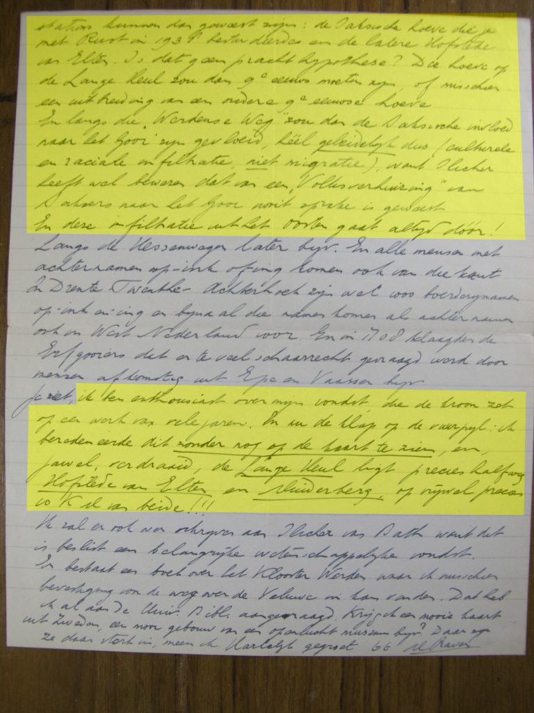 Raven had ook een exemplaar in het museum met zijn verdere, overgeschreven aantekening gedeponeerd. Toen een slimme strategie om je bevindingen niet verloren te laten gaan of ze onder een klein maar geïnteresseerde publiek te kunnen delen, op afstand. We nemen aan dat hij het Museum voor Gooi en Omstreken bedoelde. Die collectie is naar het provinciaal depot in Castricum gegaan en slechts nog zeer fragmentarisch geïnventariseerd.