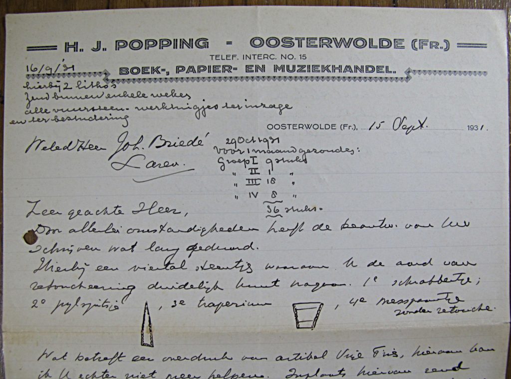 Bij de stukken die Briedé in 1957 aan Bakker overdoet, zit een aantal stukken van Raven en twee brieven van de Friese archeoloog Hendrik Jan Popping (23-04 1885 – 10-08 1950) uit het Friese Oosterwolde uit 1931.