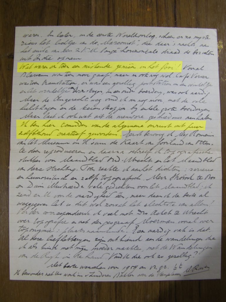 Enig tijd later, maar nog voor 26 mei van dat jaar, weet hij nóg iets uit zijn jeugd te melden. Naar aanleiding van Briedé’s vorige brief, “ Dat karrespoor tussen de 7 bergjes herinner ik me ook nog van de wandelingen met mijn Moeder ± 1902, alweer een halve eeuw geleden”