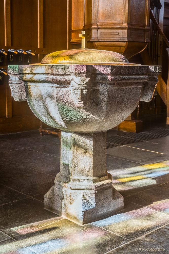 Later heeft men ze een zeer zeer centrale positie gegeven. Achter een speciaal houten muurtje, recht onder de preekstoel, de ultieme focus van de protestantse eredienst (PKN). Iets van een schuldbetuiging van een zinloze daad der voorvaderen? Een doopvont was nu niet bepaald iets katholiek, net als een orgel of preekstoel voor protestanten bruikbaar kerkmeubulair.