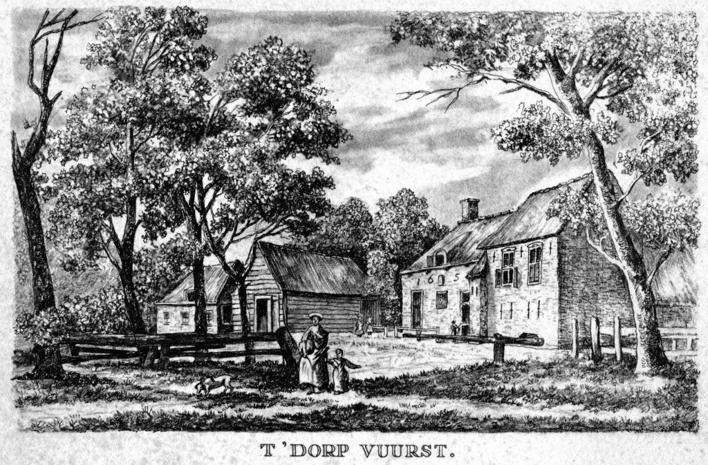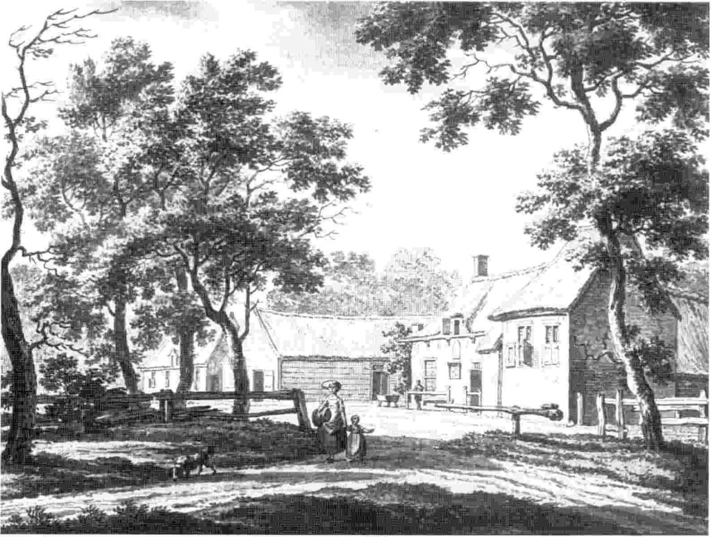 Het wat al te rustiek weergegeven tolhek en struiken onttrekken op BI de Steen links vooraan bijna geheel aan het gezicht. B2, de vaak gereproduceerde ets ‘T DORPVUURST uit Vaderlandsche Gezichten, of afbeeldingen behoorende tot den Tegenwoordigen Staat der Vereenigde Nederlanden in den jaare 1786,naar het leven geteekend door Jan Bulthuis en in het koper gebragt door Corel Frederik Bendorp, Amsterdam 1792.