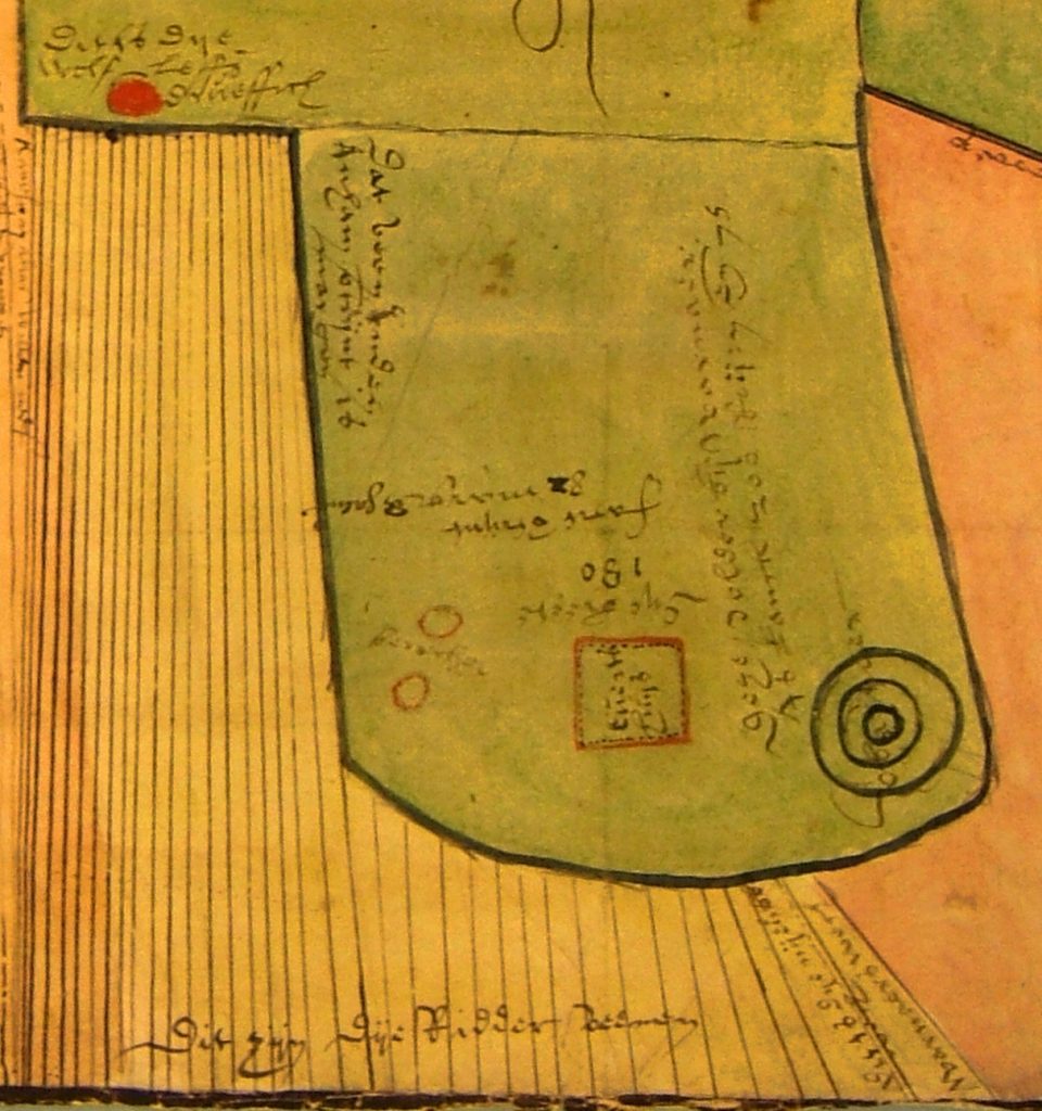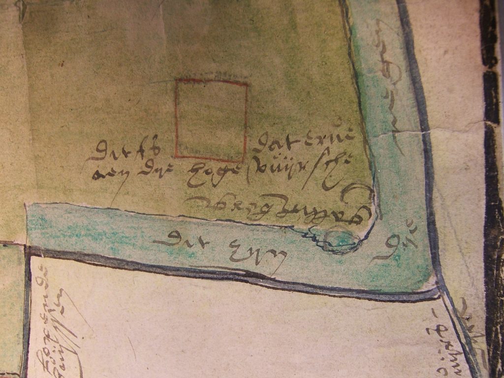 Op oudere topografische kaarten is een restant van een buitenste gracht te vinden. Als we deze in gedachten rondom trekken dan klopt die afstand precies. Een alle afstanden en oppervlaktes op zijn kaart blijken goed traceerbaar. Het zou nog kunnen dat deze lengte wel naar de hoek bij Drakensteyn verwijst maar dat de toren daar niet stond en dat Drakensteyn later daar wél gebouwd is. Dat zou erg toevallig zijn.