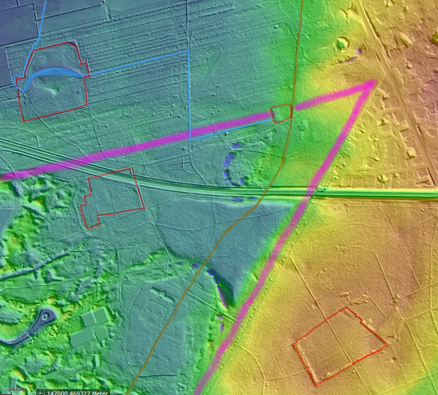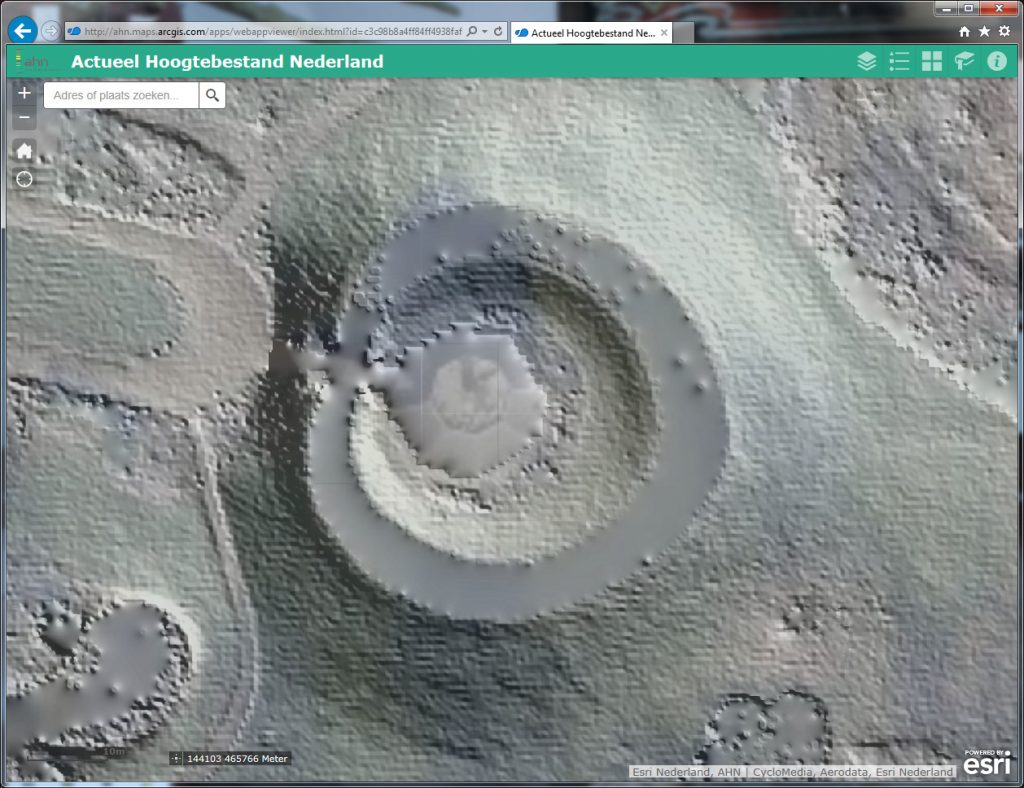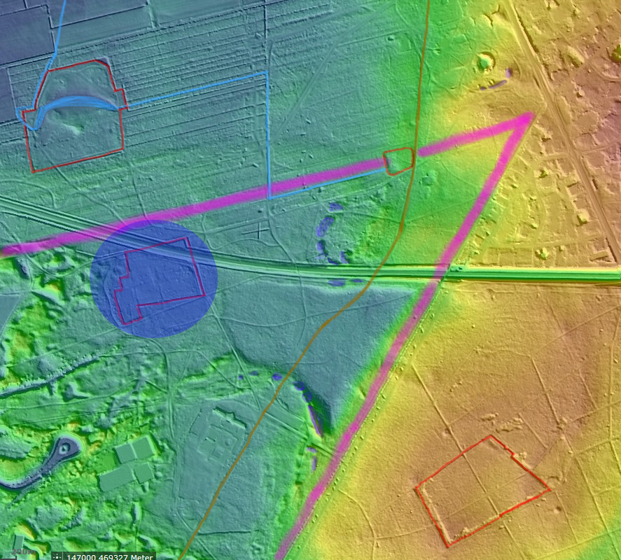 Een derde bewijs is die buitenste greppel. Op de hoogtekaart lijkt deze nog net waarneembaar. Maar goed, twee is geen drie. Een heuvel is iets anders dan de kleine diepte waar Drakensteyn nu in ligt.