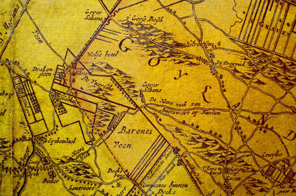 De kaart heeft hier een klein beetje waterschade opgelopen.