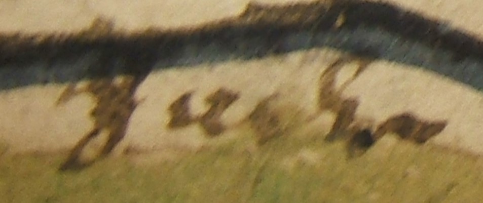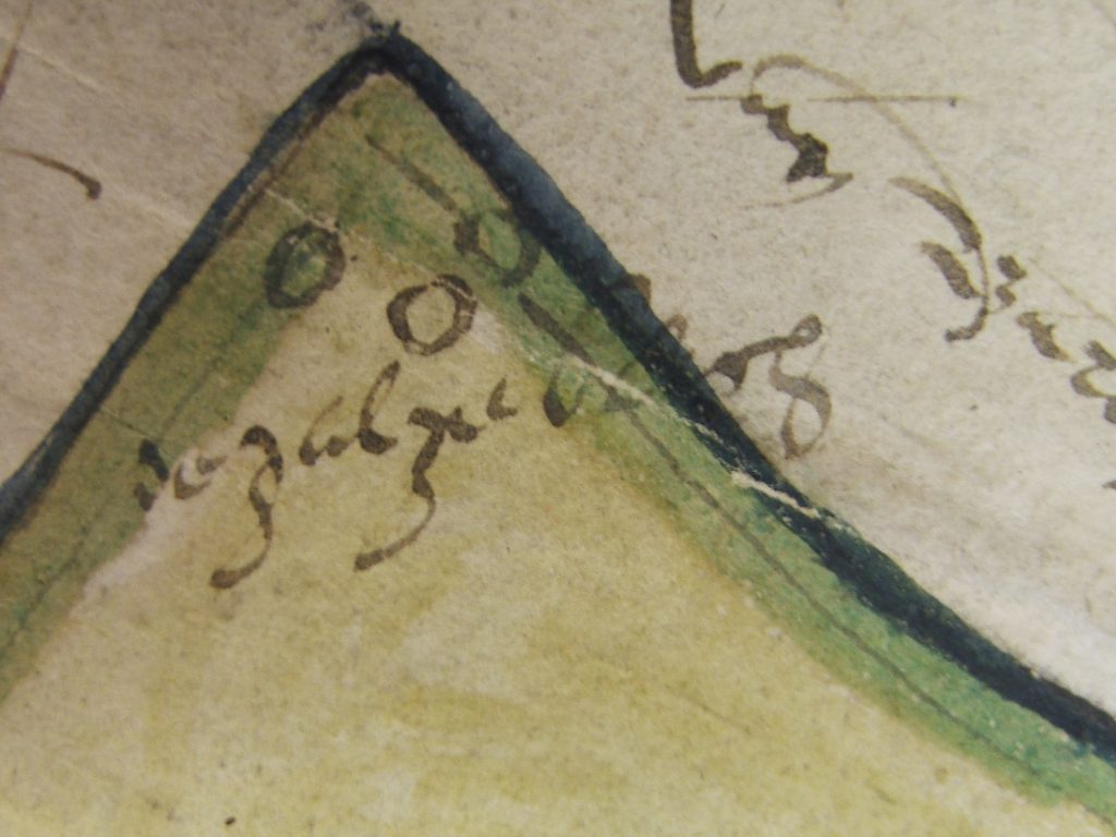 Op de ±1625 kaart zijn hier twee cirkels, met de omtrekkende lijn aan de oostzijde voorzien van enkele slingerende accenten om iets te suggereren. Mogelijk is hier ook een derde cirkel getekend, in elk geval zit hier nog een half cirkeltje. Hier staat gallich berge.