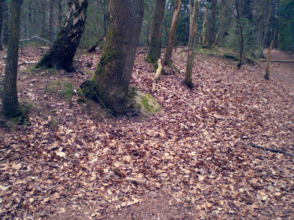 Deze “discrete” bergjes zouden oude grafheuvels kunnen zijn. Er zijn dichtbij in het Roosterbos ook grafheuvels. Maar het significante is, denk ik dat ze deel uitmaken van een richel om de oude weg.