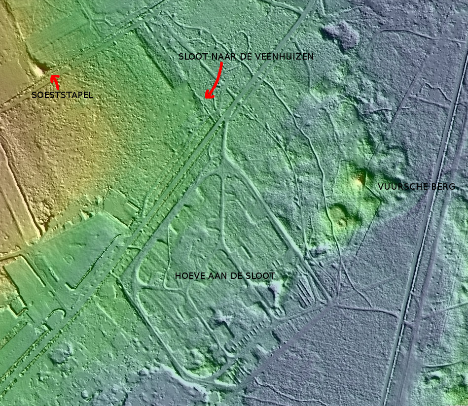 Deze wijkt in zoverre af van alle andere hoeven op de kaarten van de Vuursche, dat deze zich niet direct aan de Vuursche Dijk staat maar een stuk westwaarts hiervan. Maar nog steeds op “Stichtse” gebied.