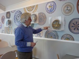Om de materiaalkennis uit te breiden is een groep actieve leden van onze afdeling naar de tentoonstelling ‘Majolica 2: Noord-Nederlandse majolica uit de Gouden Eeuw’ geweest in het Museum In ’t Houten Huis in De Rijp. Wij kregen daar een leerzame rondleiding van Aldert Pilkes, Majolicakenner en bestuursvoorzitter van het museum. Niet alleen leerzaam, maar ook een plezier om alle prachtige schalen, borden en kommen te bekijken. Een aanrader; de tentoonstelling loopt nog tot en met 25 maart 2018.