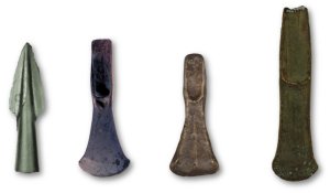 Ergens tussen 3000 en 2000 v. Chr kwamen prehistorische gemeenschappen in onze streken voor het eerst in contact met koper-legeringen. Dit materiaal, glanzend als goud maar – anders dan steen – opnieuw om te smelten, werd uiteindelijk het standaard metaal voor snijdende werktuigen.